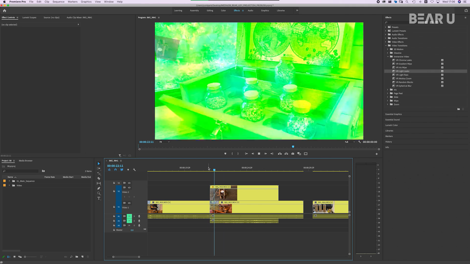 Video Effects 에도 여러가지 효과들이 있음.