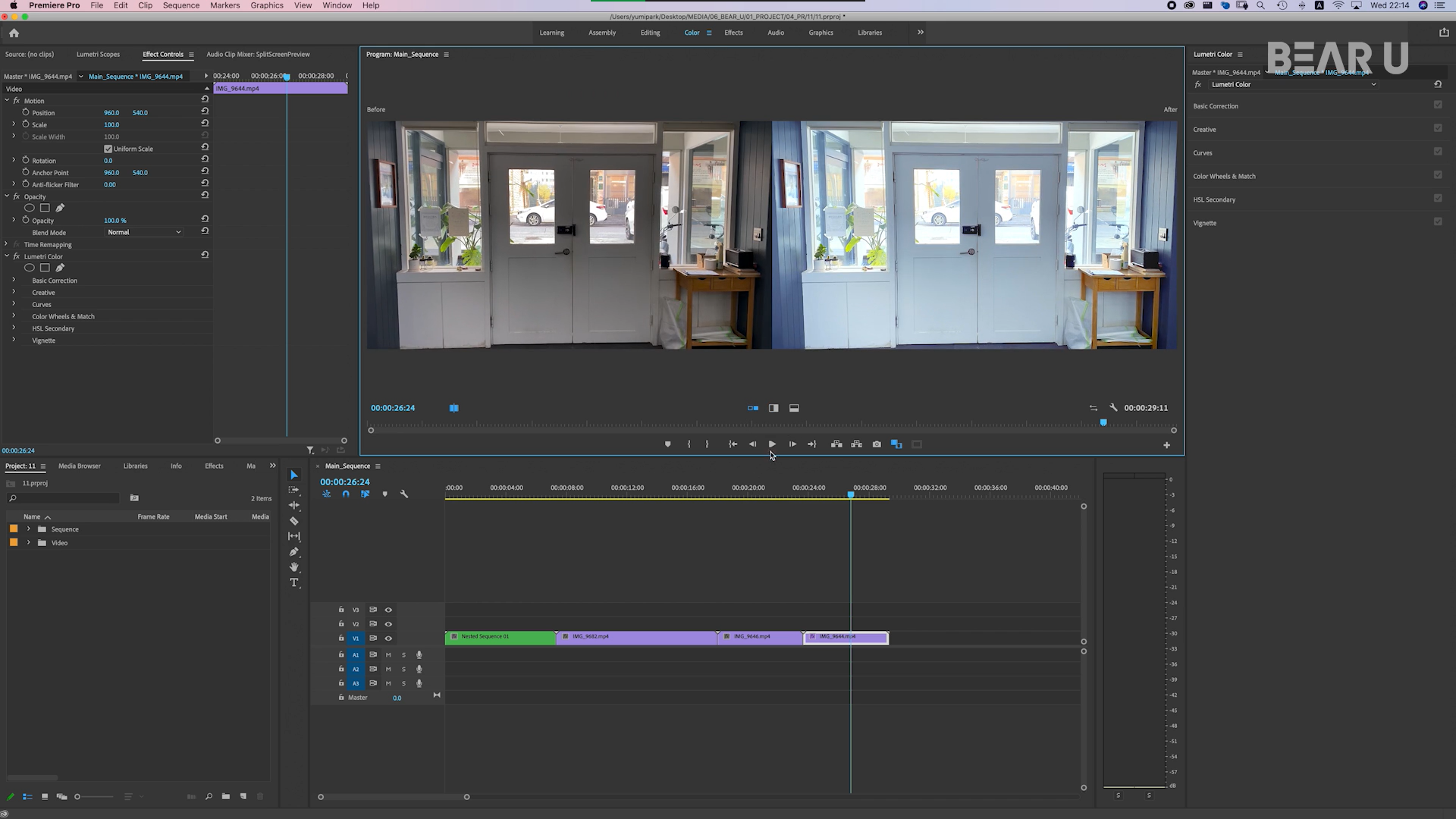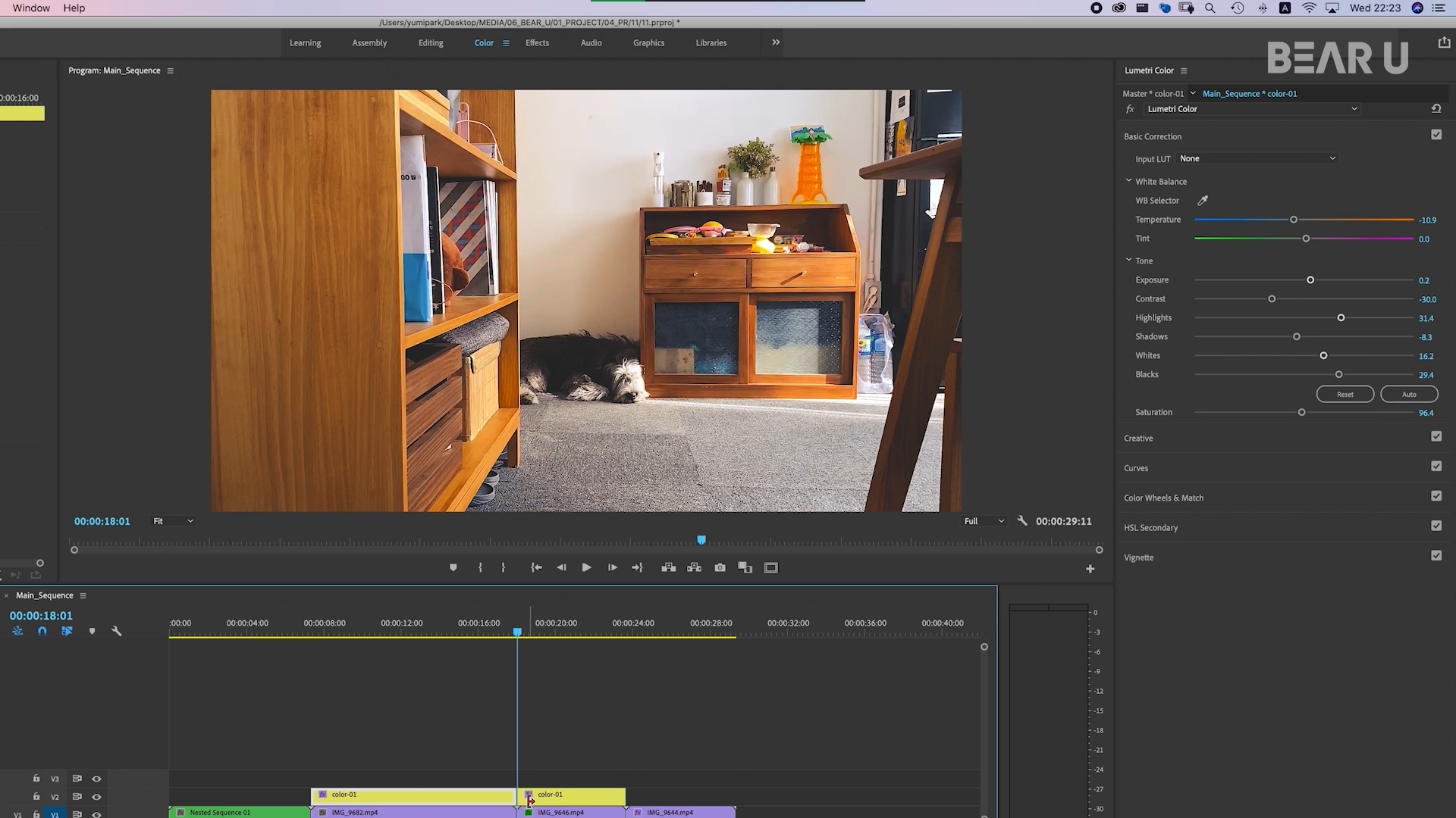 1) Lumetri Color 로 직접 해당 영상 컬러 조절하기